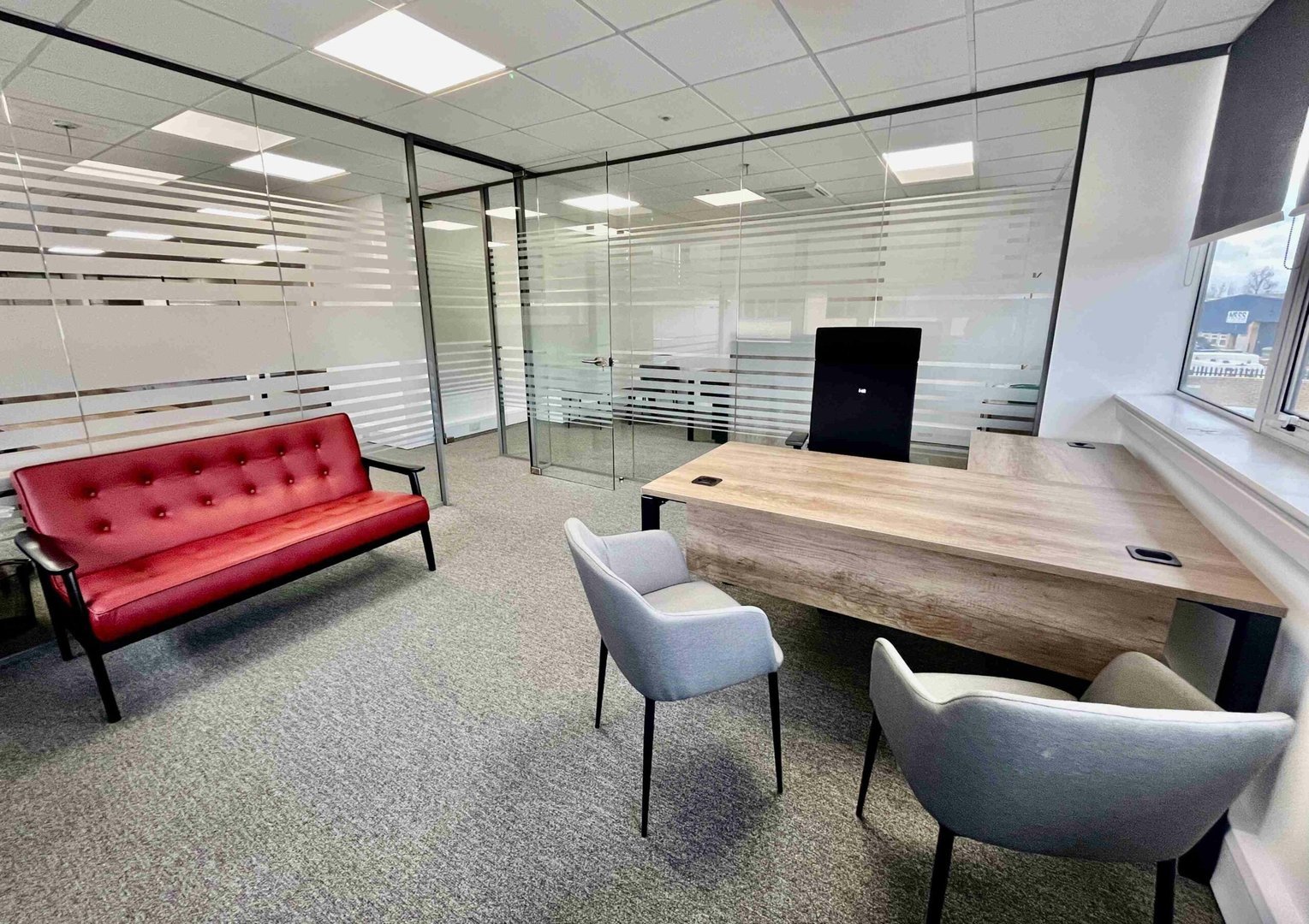 Next, we ordered furniture that fit with the corporate colours of our client’s business and decorated the office according to their specifications.