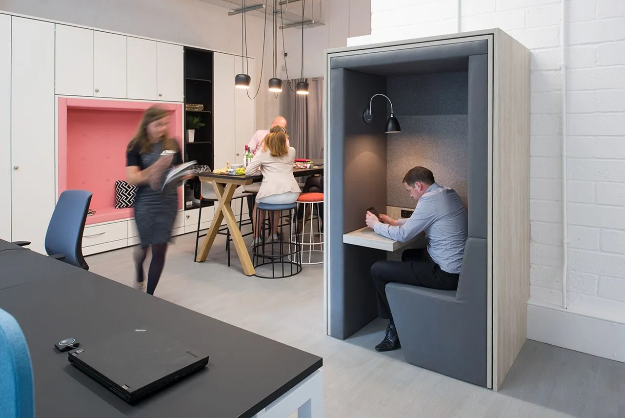 Make your small office a sociable environment to boost happiness and retention. Arrange desks to encourage face-to-face interaction. Bring them to eye height and orient people to face one another. Consider including cosy breakout spaces for informal chats or quick meetings.